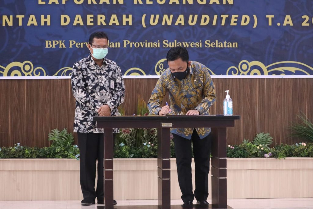 Bupati Bantaeng, H. Ilham Azikin menyerahkan langsung LK (Unaudited) bersama dengan lima Kepala Daerah lainnya, yakni Walikota Makassar, Moh. Ramdhan Pomanto, Bupati Takalar, H. Syamsari Kitta, Bupati Bone, A. Fahsar Mahdin Padjalangi, Bupati Sinjai, Andi Seto Gadhista, dan Bupati Luwu Utara, Hj. Indah Putri Indriani.