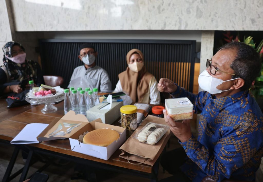 Tak lupa juga, para rombongan ini pula membawa berbagai contoh produk jualannya. Seperti kue marbel, japanese cake, poteng dan puding.