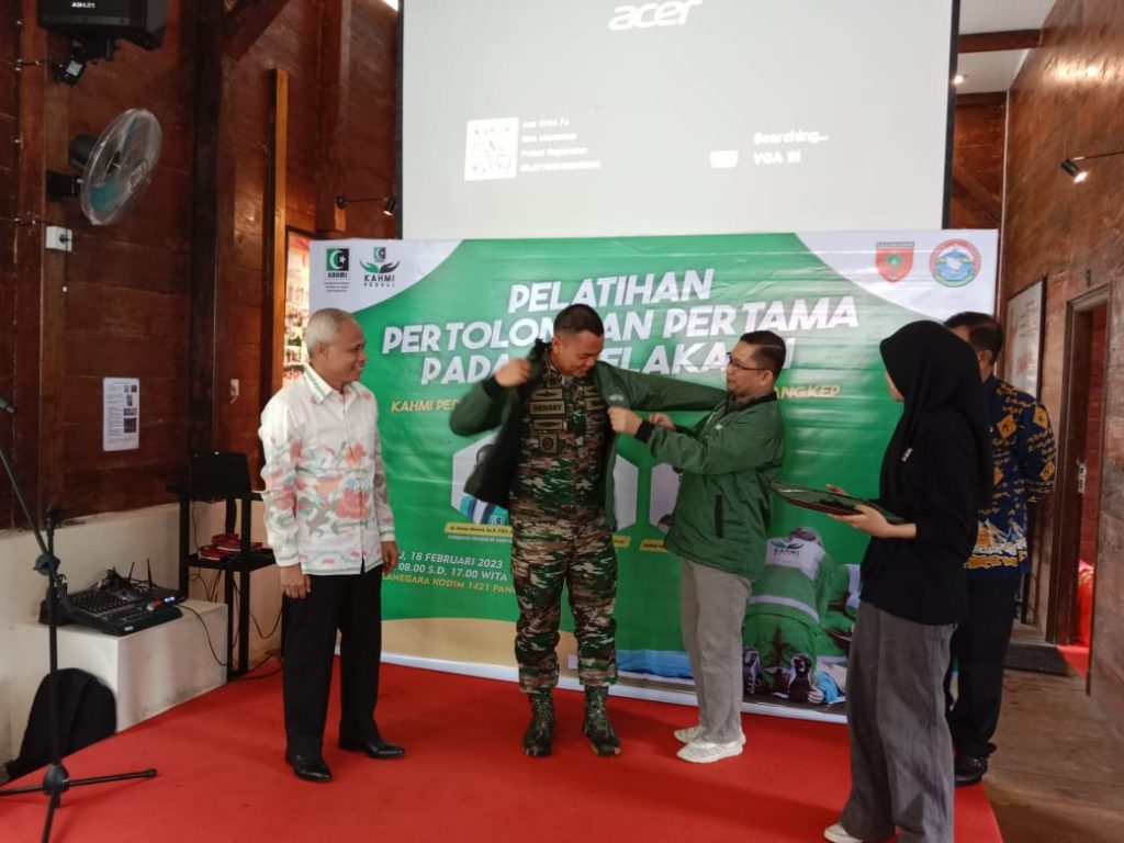 Kegiatan yang diadakan oleh KAHMI peduli bekerja sama dengan Kodim 1421/Pangkep menampilkan para Narasumber antara lain Letkol Inf Hengky Vantriardo, SE, MM, M. Han(Dandim 1421/Pkp), dr. Annas Ahmad. Sp.b.FICS.M.Kes(Presidium KAHMI Kab Pangkep), dr. Dendi Sp.An(Narasumber), Syamsul Qomar, S.Kep.Ners(Narasumber), Imanuddin Karim, S.Kep(Narasumber).