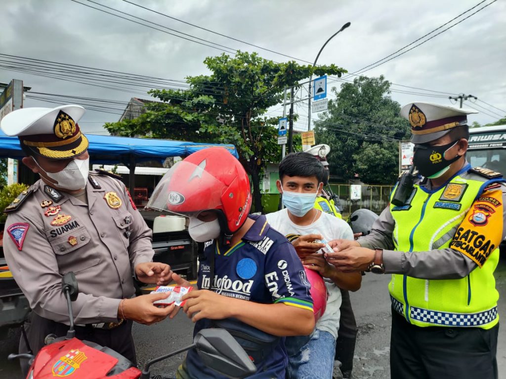 Pembagian masker bukan hanya menyasar anak kecil saja namun juga menyasar seluruh pengendara yang tidak memakai makser.