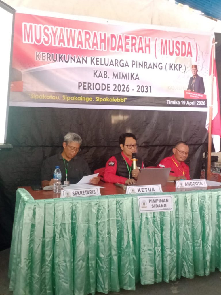 SPIONASE-NEWS.COM,- MIMIKA PAPUA TENGAH – Musyawarah Daerah (Musda) Kerukunan Keluarga Pinrang (KKP) Kabupaten Mimika, Papua Tengah telah dilaksanakan pada hari Minggu, 19 April 2026.