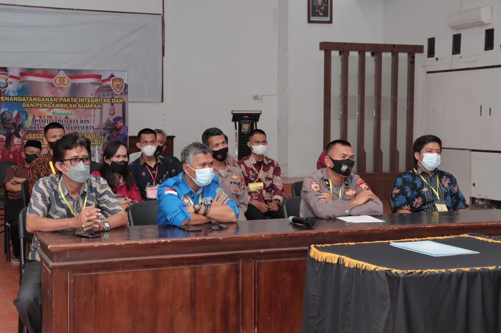 Dalam Upacara secara Virtual tersebut kegiatan yang dilaksanakan yaitu Pembacaan ikrar oleh masing masing perwakilan panitia seleksi, Calon Anggota Polri serta Orang Tua Calon Anggota Polri kemudian Pengucapan Sumpah Janji yang dilanjutkan dengan Penandatanganan Pakta Integritas oleh Para Panitia, Calon Anggota Polri dan Orang Tua Calon Anggota Polri yang mendaftar.