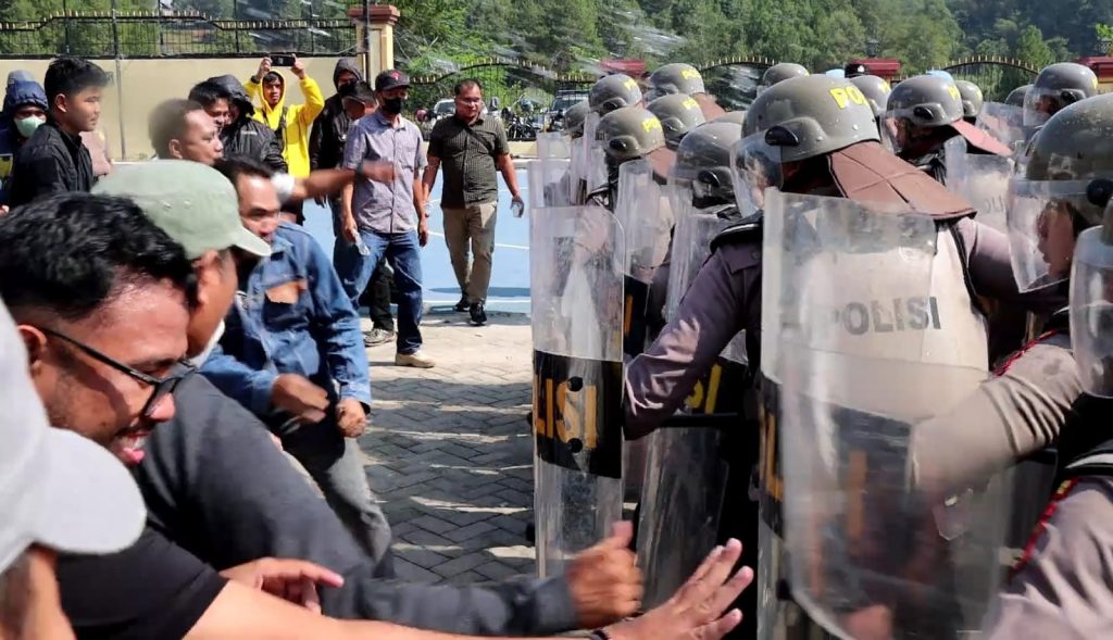 Terdengar suara teriakan massa pengunjuk rasa yang tidak terima dengan hasil pemungutan suara hingga situasi memanas. Hampir sebanyak ratusan personel Polres Toraja Utara disiagakan di lokasi untuk meredam amuk massa.