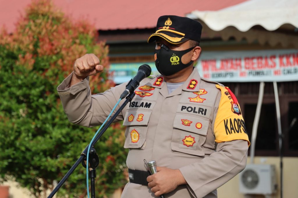 Satu hal yang kembali saya tegaskan kepada seluruh anggota agar tetap mengedepankan protokol kesehatan saat bertugas demikian juga terhadap warga yang ditemukan tanpa mengikuti protokol kesehatan dalam melakukan aktivitas agar diberi teguran.
