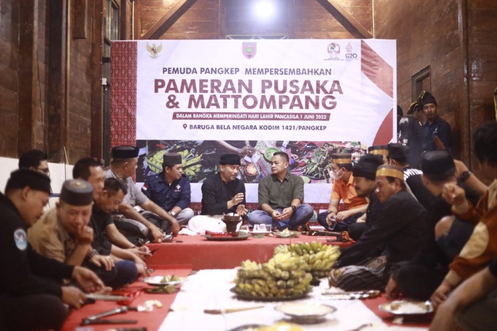 Ritual Mattompang meriahkan peringatan Hari Lahir Pancasila digelar di Baruga Bela Negara Kodim 1421/Pangkep Jl. Kesatria Kel. Padoang doangan Kec. Pangkejene Kab. Pangkep. Sabtu malam (04/06/2022).
