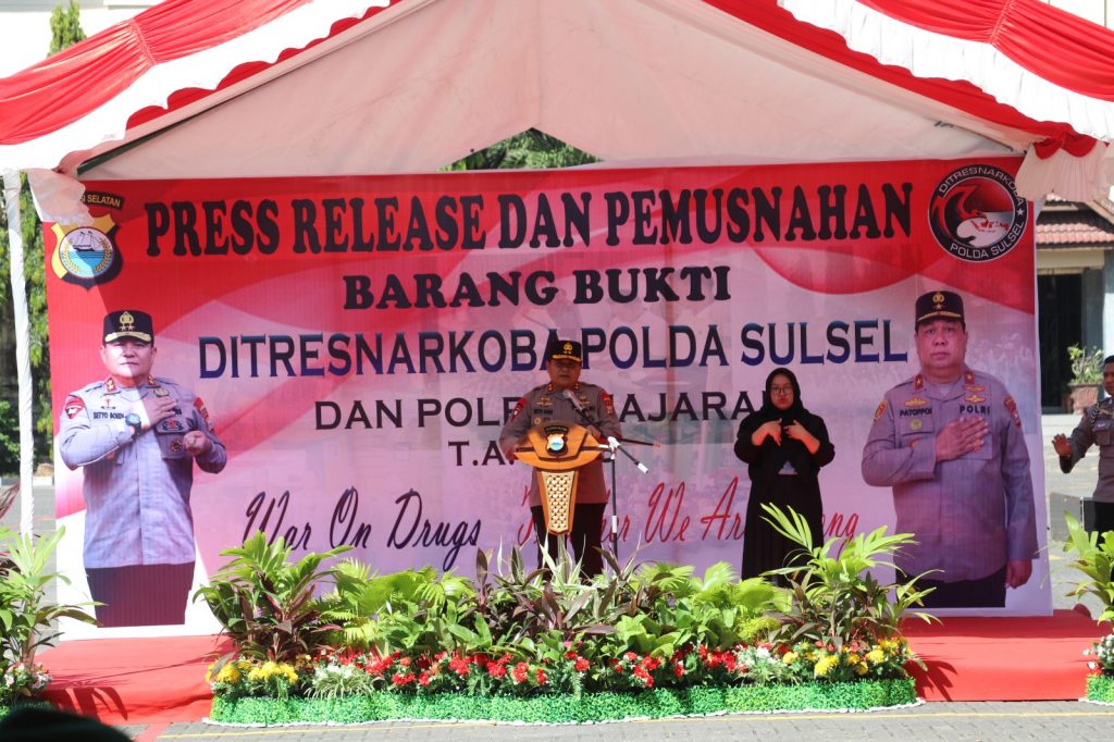 “Saya ucapkan selamat dan apresiasi setinggi – tingginya kepada Jajaran Satres Narkoba Polda Sulsel dan jajaran dan juga atas dukungan masyarakat, dan organisasi anti narkoba sehingga bisa melakukan pengungkapan ini,” ujar Kapolda Sulsel.